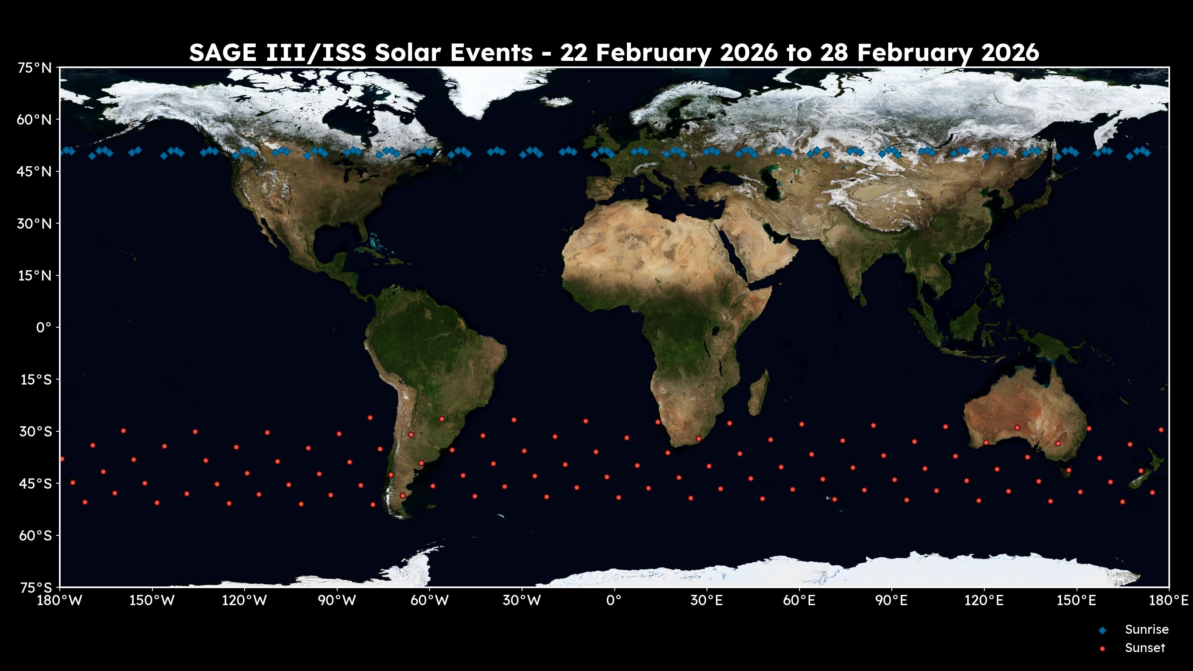 SAGE III takes measurements across the globe using a technique called occultation, which involves looking at the light from the Sun or Moon as it passes through Earth’s atmosphere at the edge, or limb, of the planet. The ISS provides a unique vantage point from which to take those measurements.